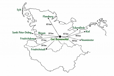 Bennewohld liegt im Herzen Dithmarschens am Rande der Kreisstadt Heide. Mit seinen rund 40 Einwohnern und den beiden beheimateten Bauernhöfen ist es ein Dörfchen wie aus dem Bilderbuch. Die angrenzende Moorlandschaft ermöglicht einen traumhaften Blick über das ‘platte Land’ und ist in Kombination mit einem naheliegenden Waldgebiet ein optimaler Ort für ausgiebige Spaziergänge und Radtouren. Wer ein wenig mehr Unterhaltung sucht, ist mit den folgenden Ausflugsmöglichkeiten gut ausgestattet für eine abwechslungsreichen Aufenthalt im hohen Norde.